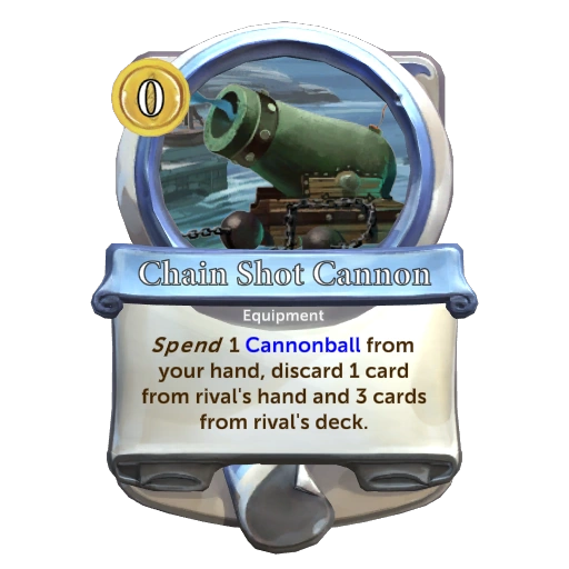 Spend 1 Cannonball from your hand, discard 1 card from rival's hand and 3 cards from rival's deck.