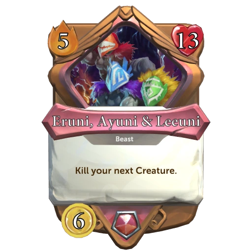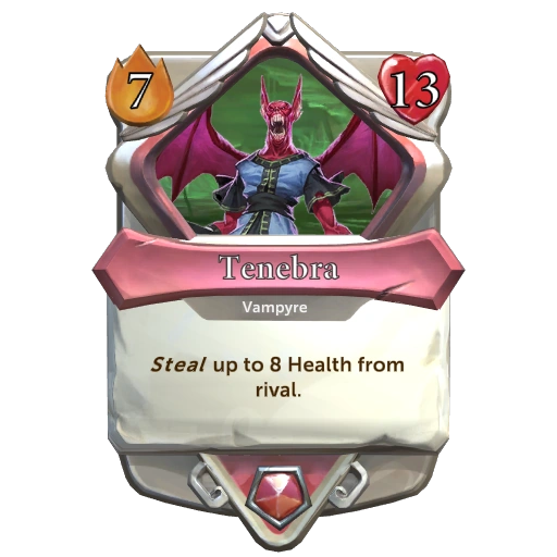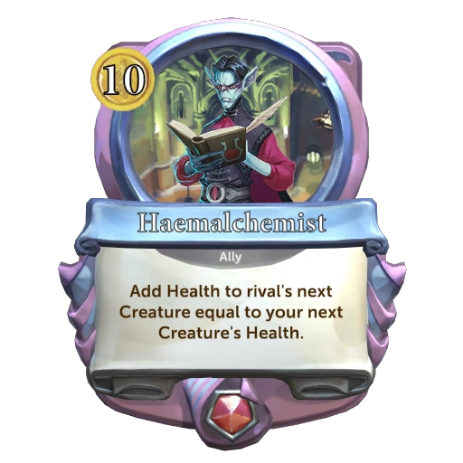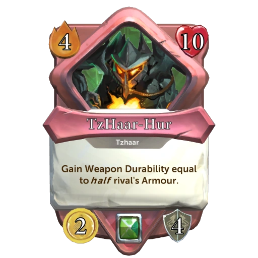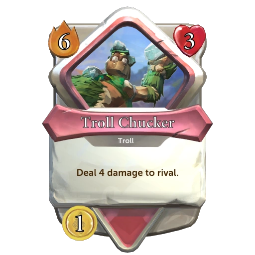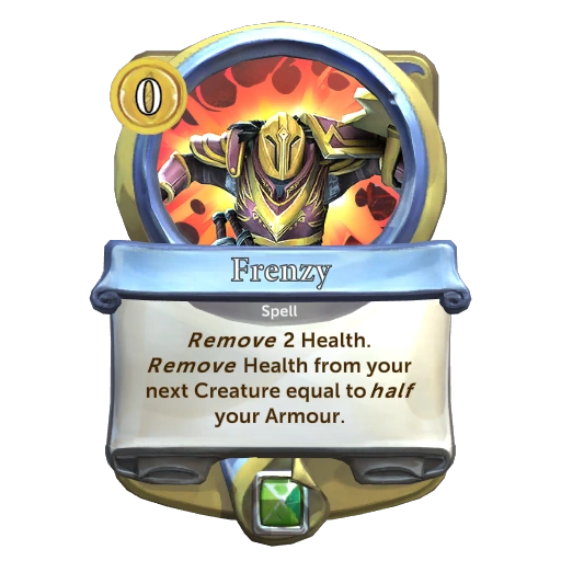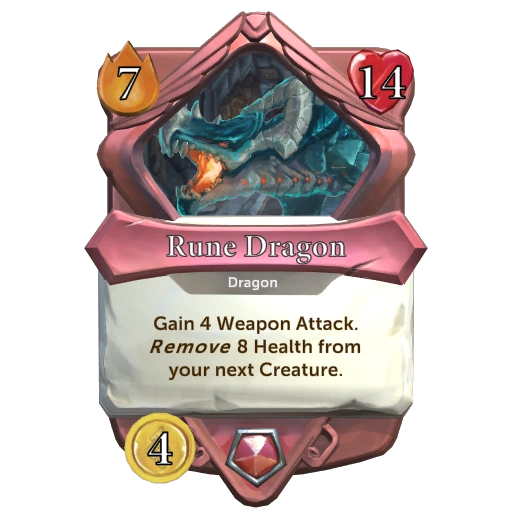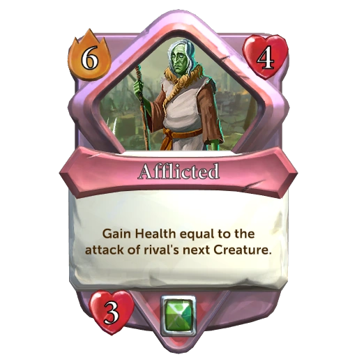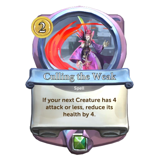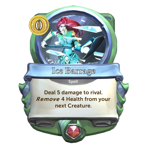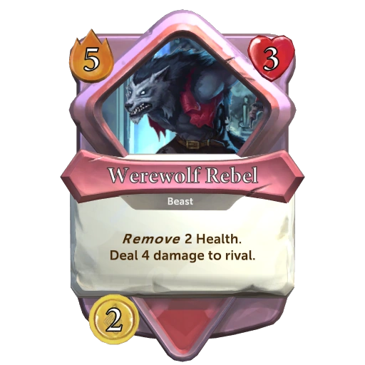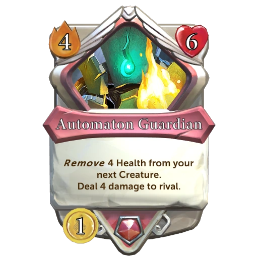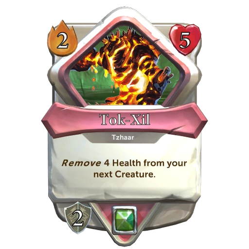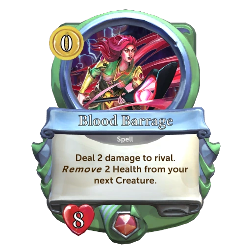 Remove 4 Health from your next Creature. Deal 4 damage to rival.