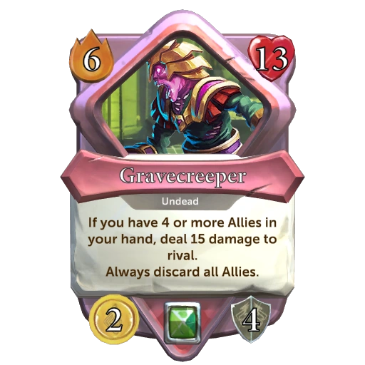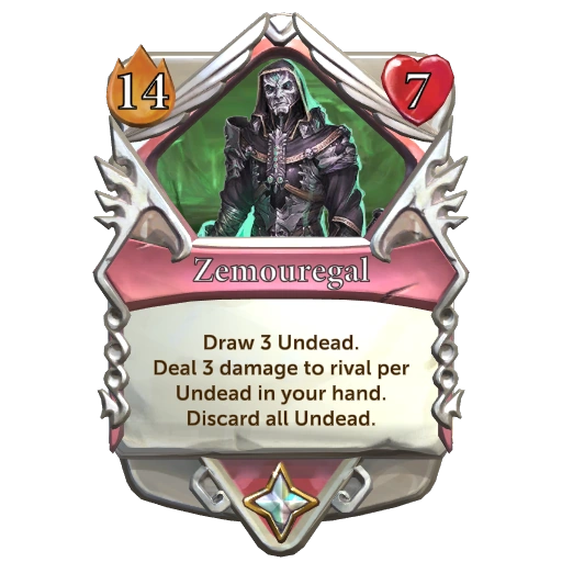 Draw 3 Undead. Deal 3 damage to rival per Undead in your hand. Discard all Undead.