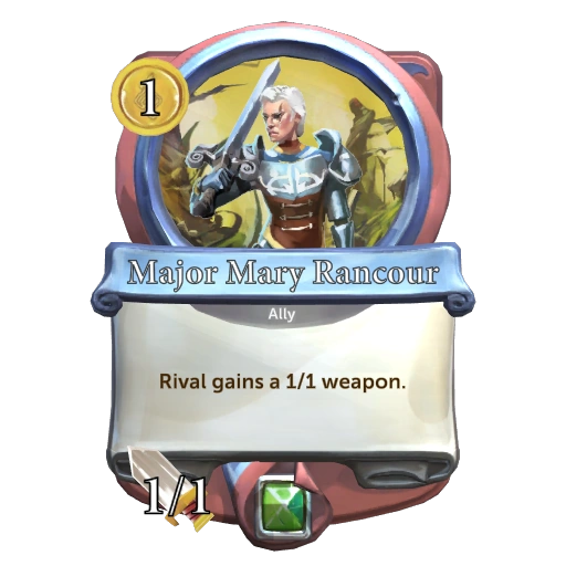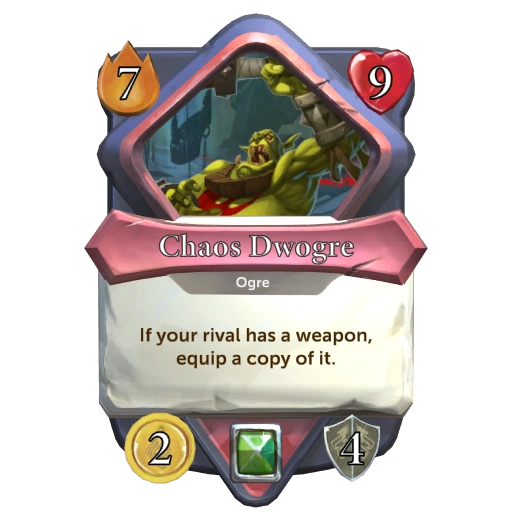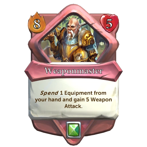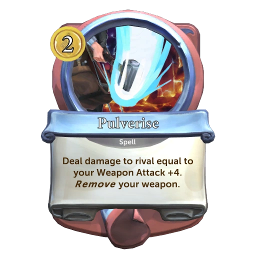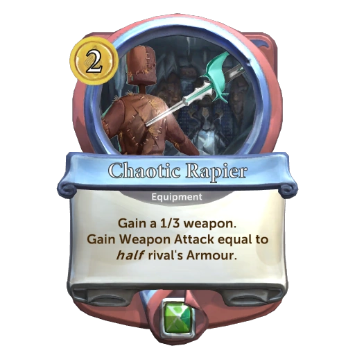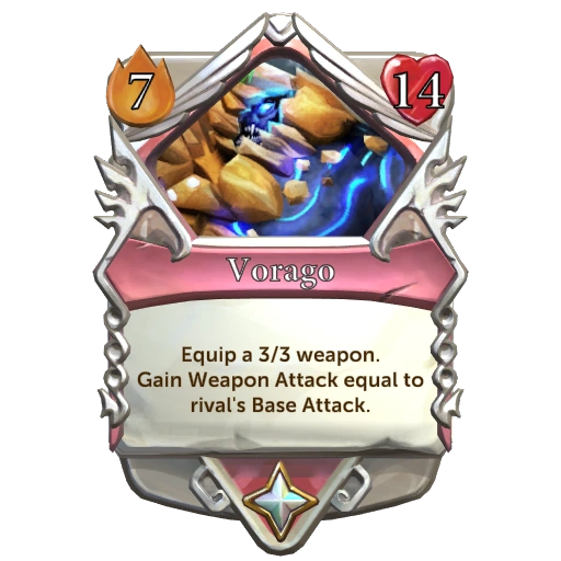 Equip a 3/3 weapon. Gain Weapon Attack equal to rival's Base Attack.