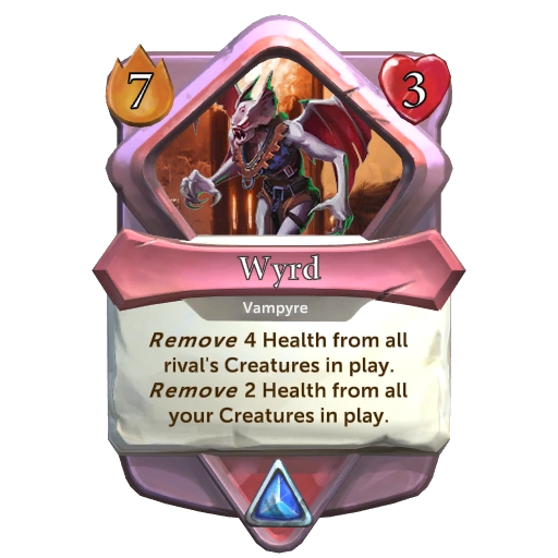 Remove 2 Health from all Creatures. Deal 2 damage to both Legends.