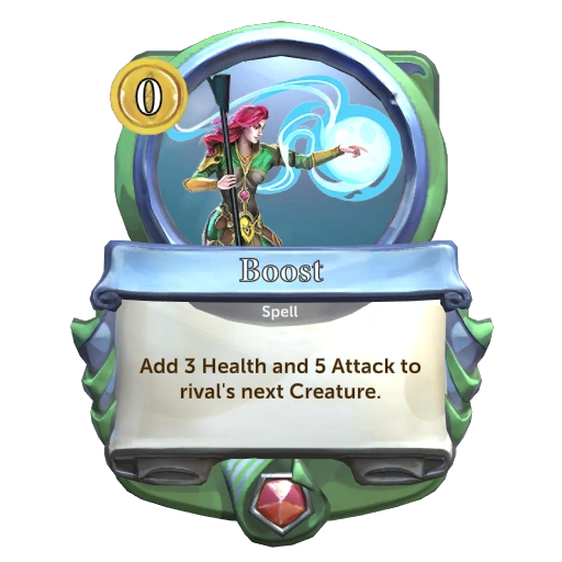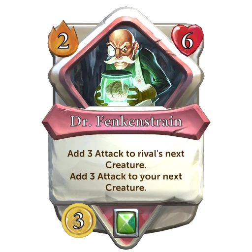 Add 3 Attack to rival's next Creature. Add 3 Attack to your next Creature.