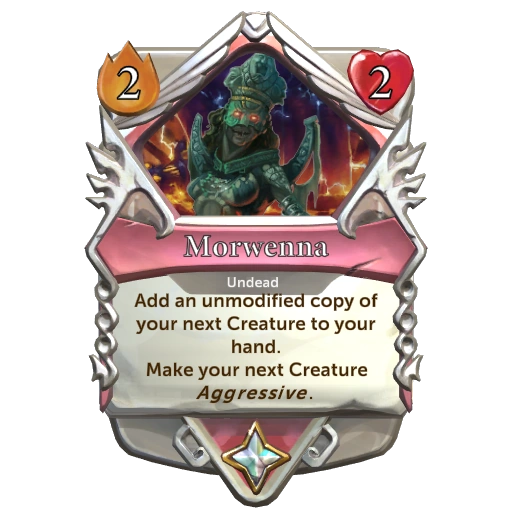 Add an unmodified copy of your next Creature to your hand. Make your next Creature Aggressive.